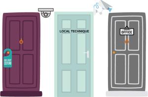 - Accès aux zones privées, stockage et sorties de service.