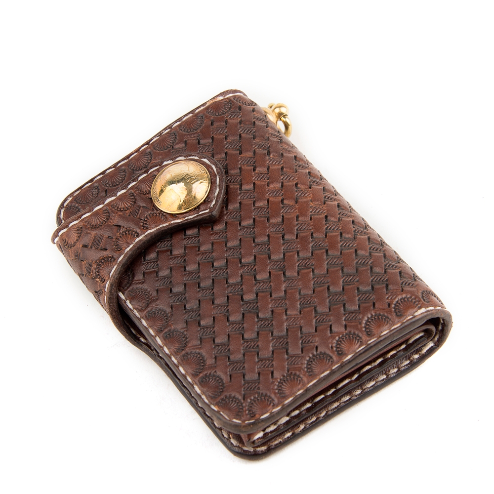 Pochette à pièce avec rabat fermé par un bouton pression en laiton.