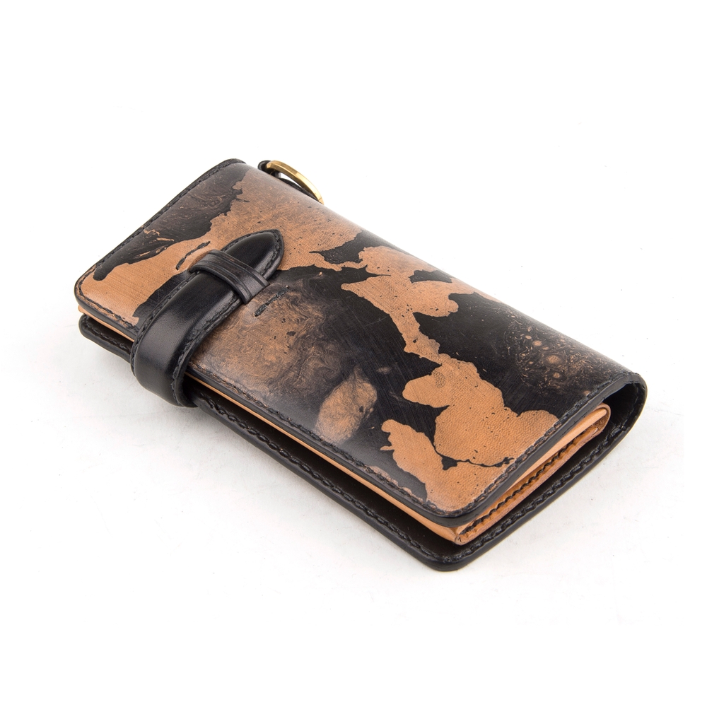 Long Wallet effet marbré sur cuir, fait main, à l’atelier et unique à chaque fois.