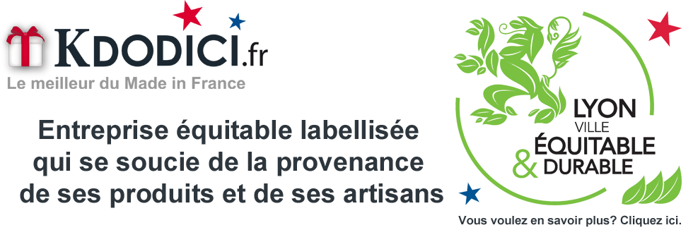 Validé par le label équitable « Lyon ville équitable et durable », KDODiCi offre aux particuliers de la France entière, et bientôt du monde entier avec une version du site en anglais, un accès direct aux créations des artisans de nos régions.
