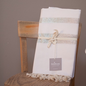 Depuis son lancement en 2009, la boutique Zandaraa développe au fil des saisons une gamme d’accessoires bain, déco et bébé, en associant le coton authentique et naturel des foutas avec du lin ou du lurex.