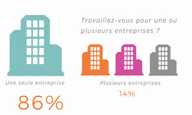 Près de 86% du panel annonce travailler pour une seule et même entreprise. Les 14% restants qui travaillent dans deux entreprises ou plus ont majoritairement un statut d’indépendant.