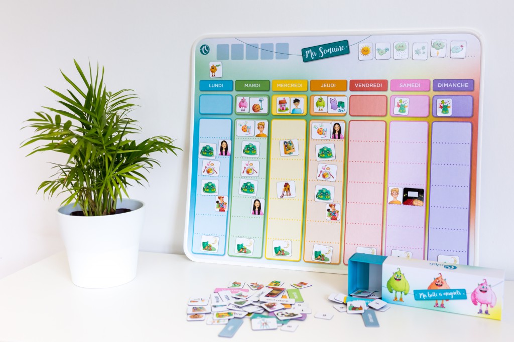 Ouikili est un planning familial qui permet aux enfants de se repérer dans le temps, de façon ludique et autonome. Cet outil pédagogique et pratique est fabriqué en France, dans les Landes.