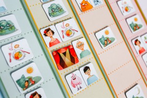 - Glisser les magnets de son choix directement sur la maquette du calendrier. Les magnets sont classés par catégorie : l’école, le déjeuner, les modes de garde, les dodos, les proches, les loisirs, les événements spéciaux (anniversaire, train, avion…), les émotions, les saisons et la météo, les lieux de culte…