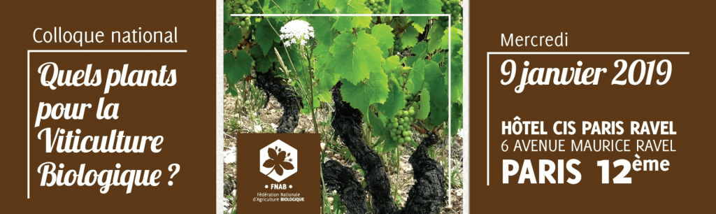 Le colloque national « Quels plants pour la viticulture biologique » aura lieu le mercredi 9 janvier 2019, à l’hôtel Ravel, 6 Avenue Maurice Ravel dans le 12ème arrondissement de Paris, de 10 à 17 heures.