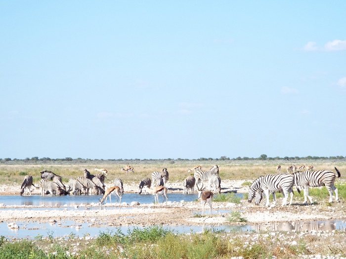 - Les safaris dans le magnifique parc Etosha, le plus grand parc animalier du pays qui s’articule autour d’une cuvette d’argile gigantesque et permet d’admirer de grands troupeaux d’animaux ;