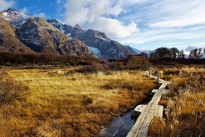 Autour du Cerro Torre et du Fitz Roy (haut de 3359m), prenez votre appareil photo et aventurez-vous dans les sentiers balisés qui serpentent la forêt, traversent les rivières et des pans de montagnes rocheux.