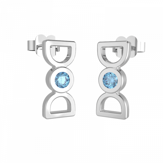 Ces boucles d’oreilles, assorties aux motifs des bracelets élastiques, sont elles aussi personnalisables à l’envie. Elles sont rehaussées de gemmes en serti clos, et dotées de fermoirs poussettes. On peut voir dans leur design épuré un duo de D, une paire d’étriers ou un nœud.