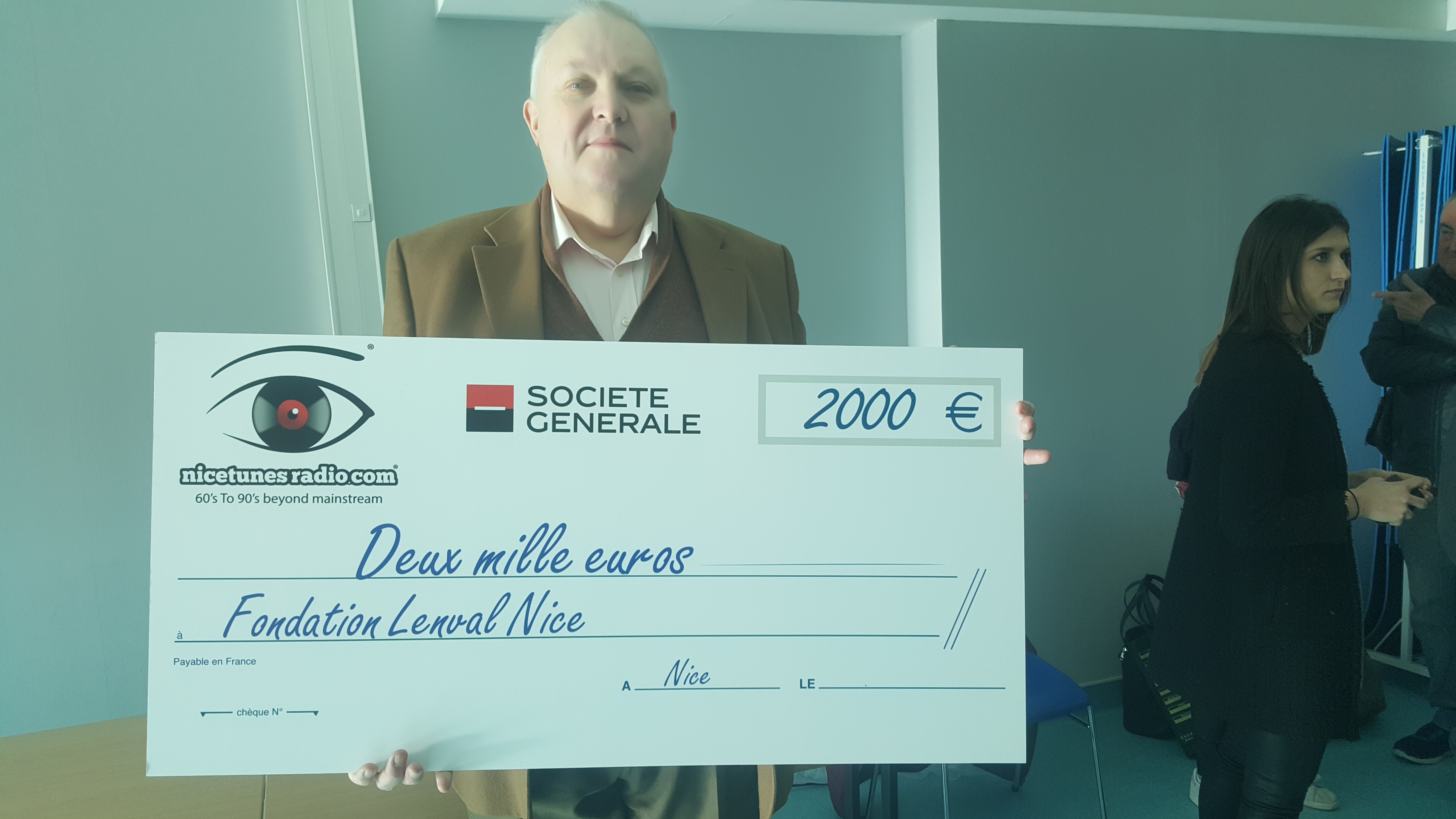 Conformément à ses engagements à la fois vis à vis de ses donateurs et de la Fondation Lenval à Nice, nicetunesradio.com, par l’intermédiaire de son fondateur Monsieur Philippe NOYER, mais en présence également des membres du bureau de l’association, a remis un chèque de 2 000 € le 12 février 2019, au profit des enfants malades.