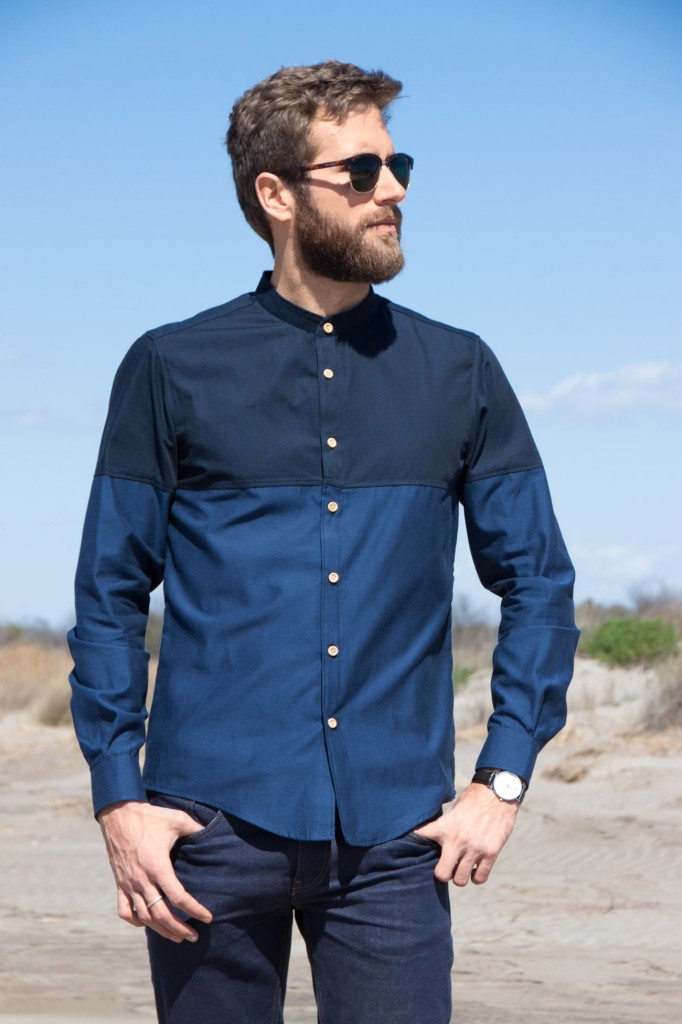 Chemise en chambray coton 100% bio certifiée GOTS.