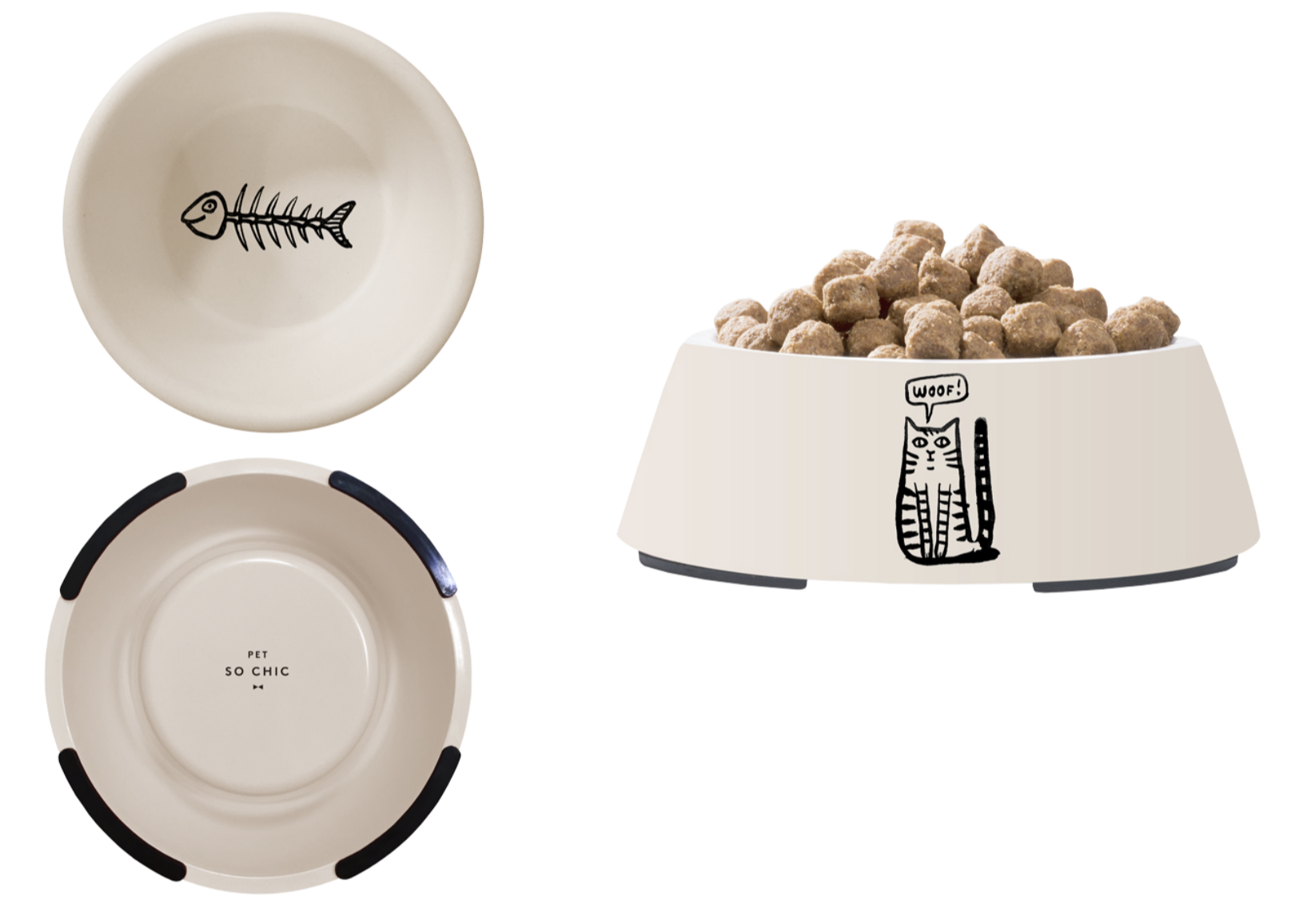 Pour les chats, plusieurs modèles sont disponibles avec un ton humoristique volontairement décalé : le rose « Caturday Night Fever », le bleu « Fat the Cat » et le blanc « The Masked Cat ».