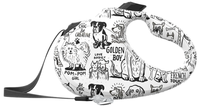 Produit emblématique de cette collection, la laisse rétractable a été spécialement conçue pour être facile à vivre et à entretenir. D’une longueur de 5 mètres, et adaptée à toutes les races jusqu’à 25 kilos, elle est équipée d’un ruban réfléchissant pour garantir des promenades en toute sécurité, même la nuit. Les dessins ont tous été réalisés par l’artiste Français Walter Glassof. Ces dessins sont imprimés sur les laisses par une technique dite de “water transfer”. Nos artisans trempent la laisse dans un bac liquide avec les dessins qui flottent à la surface. En la ressortant, les dessins sont immaculés et indélébiles. Chaque dessin est placé de façon unique, ce qui fait de votre laisse une véritable œuvre d’art.