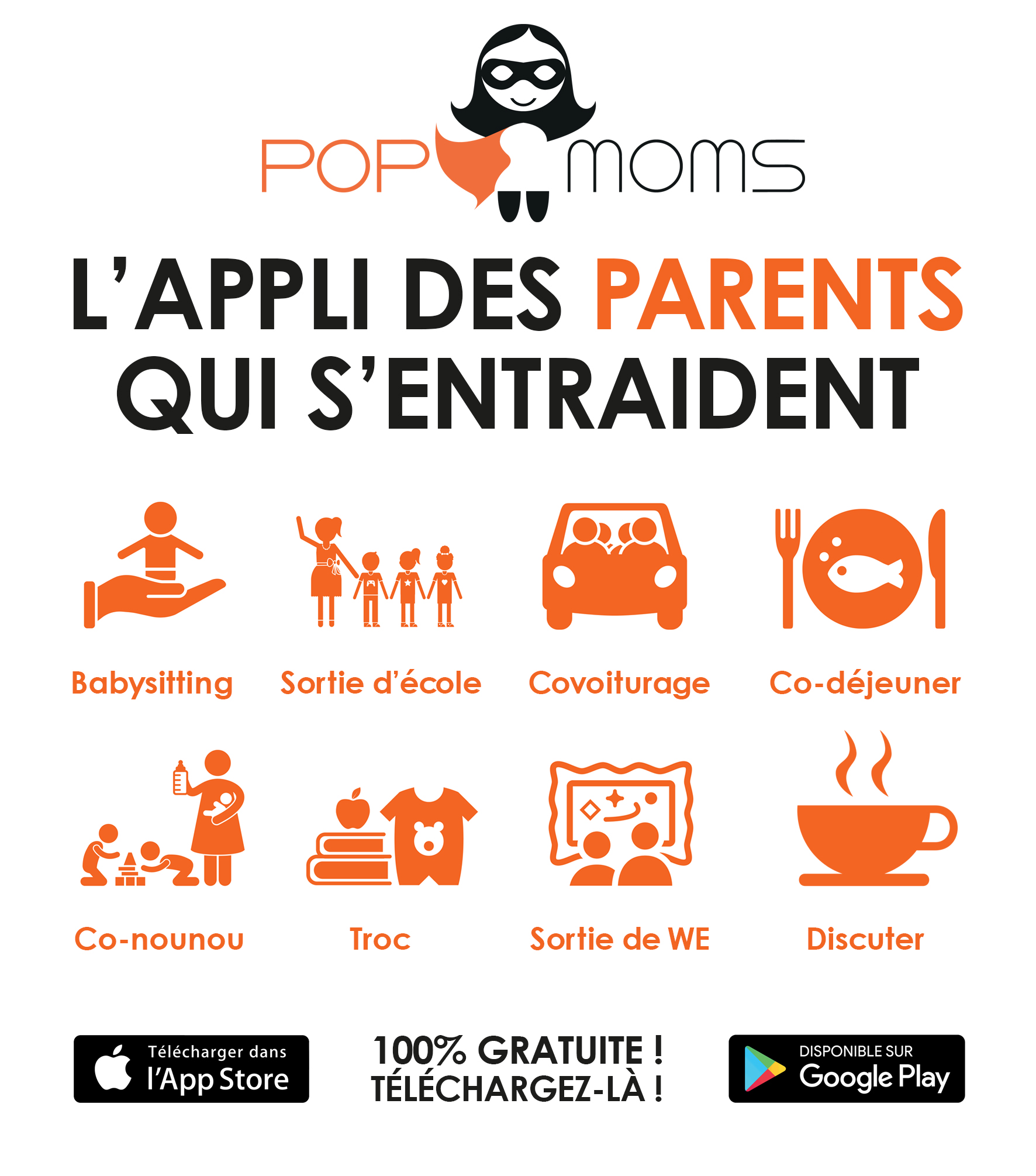 PopMoms, la seule application gratuite et concrète d’entraide entre parents, est 100% inclusive.