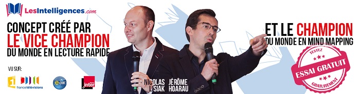 LesIntelligences.com est une plateforme qui a été fondée par deux “pros” de l’apprentissage : Jérôme Hoarau, Champion du Monde de Mind Mapping 2018 et par Nicolas Lisiak,Vice-Champion du Monde en Lecture rapide 2017.
