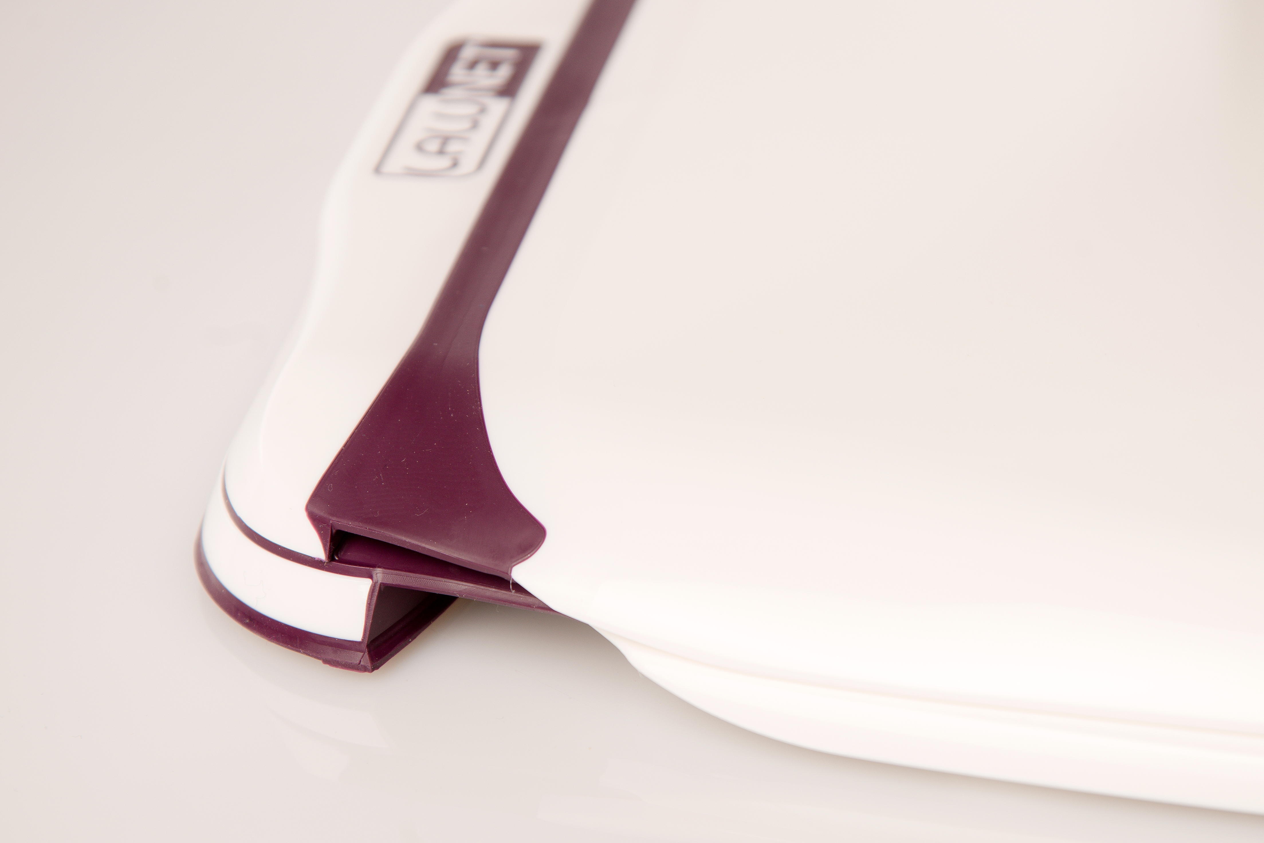 De plus, un joint souple sous le dormant, qui sert à fixer la lunette, évite tout passage de liquide en dessous de la cuvette. Ce joint donne également une grande stabilité à Lalunet’ en évitant son glissement sur la cuvette. Un second joint, entre les dormants de la lunette et du couvercle, rend complètement étanche le système de fixation. Et qui dit étanchéité, dit propreté !