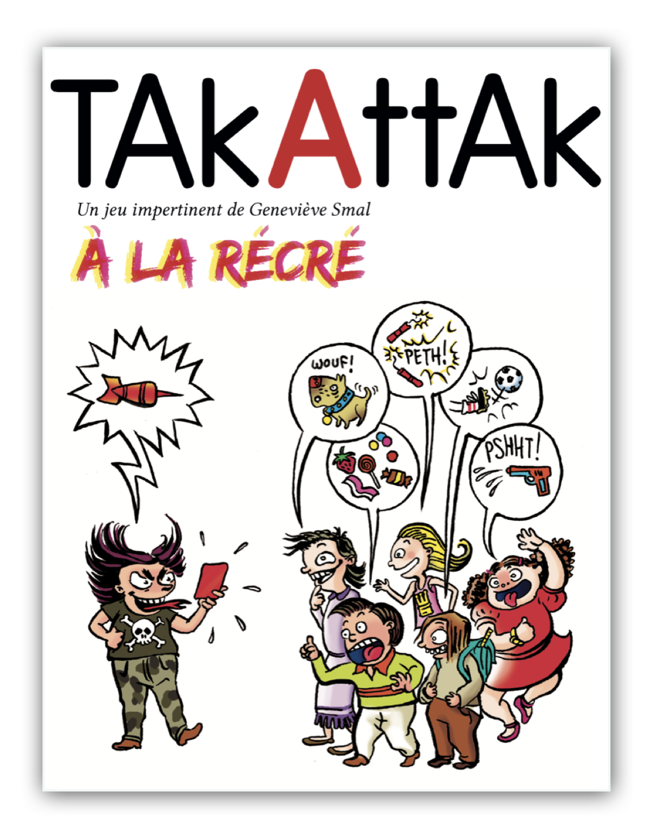Quelques mois après la sortie de Takattak, le jeu qui apprend aux timides (et pas que…) à riposter, Geneviève Smal donne naissance à Takattak à la récré, le jeu de cartes anti-harcèlement, qui se joue en famille, entre copains ou en classe, pour apprendre à ne plus se laisser marcher sur les pieds.