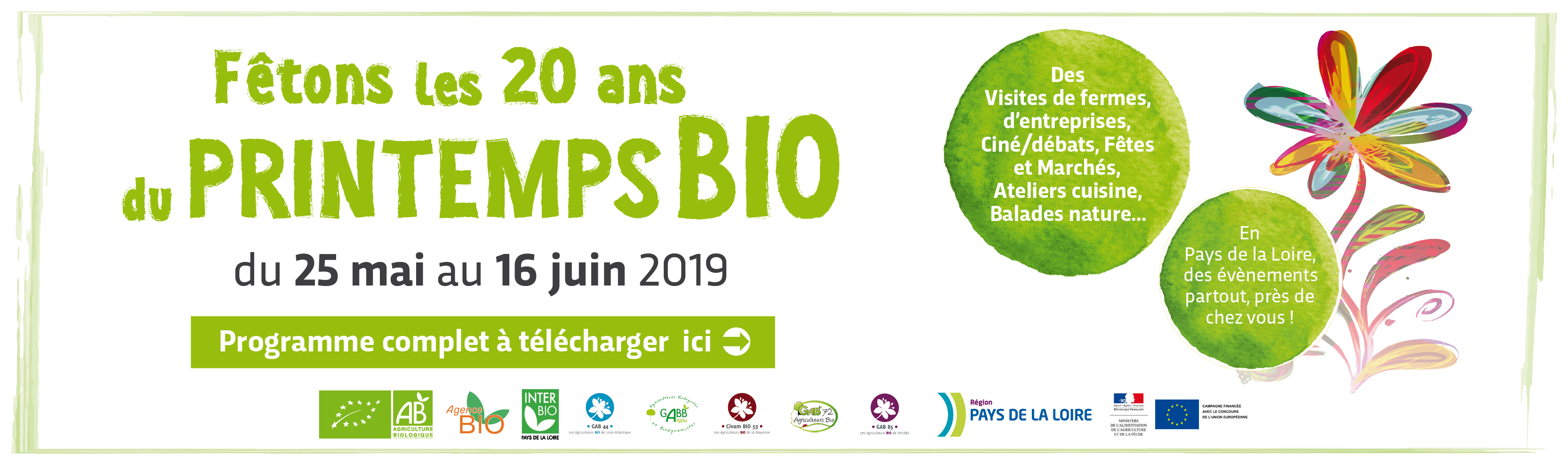 Le programme régional du Printemps bio est proposé par INTERBIO Pays de la Loire en partenariat avec ses adhérents : les producteurs, les magasins bio, les entreprises des Pays de la Loire, les groupements de producteurs bio, et le CIVAM Bio Mayenne.