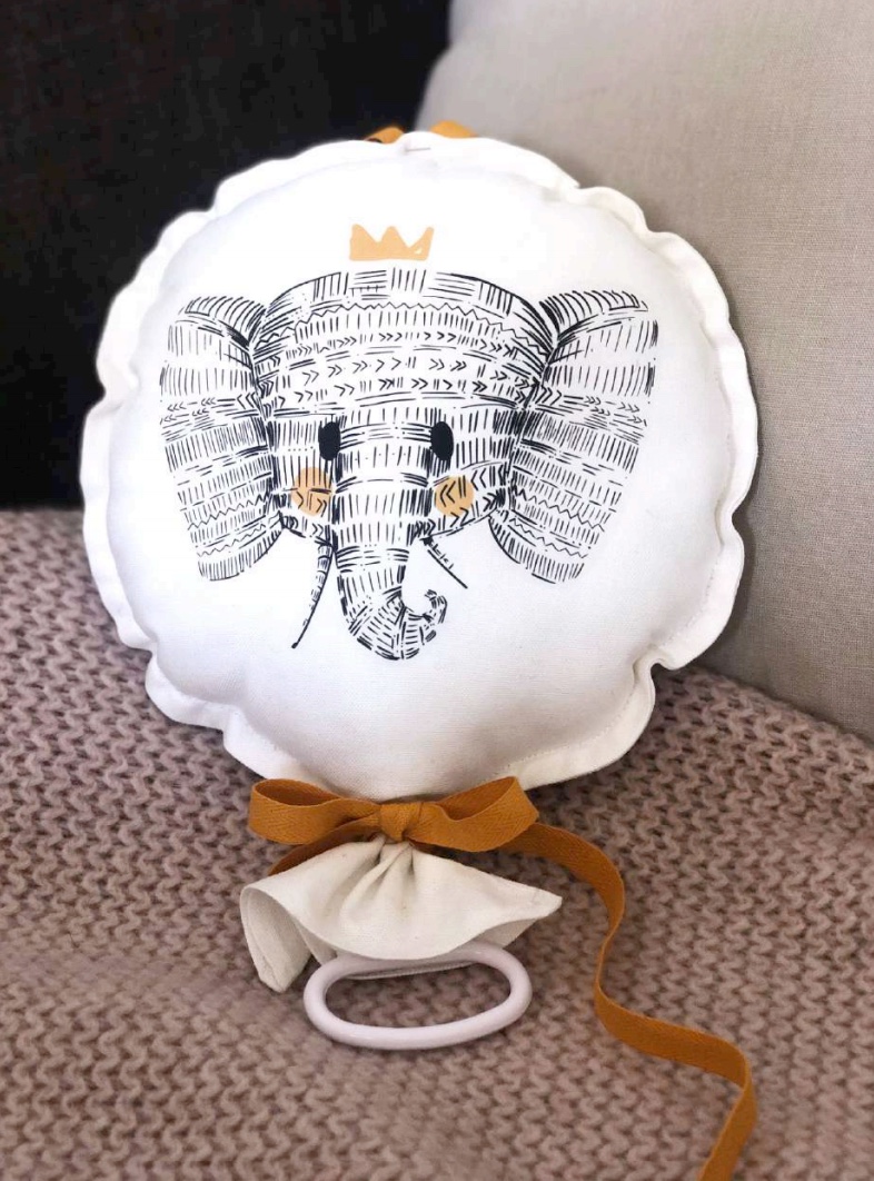 Ce joli coussin musical en toile de coton fait voyager les enfants vers l’Afrique grâce à un design unique autour de l’éléphant et des motifs du « kenté », un tissu africain au caractère sacré. Originaire du Ghana, le kenté est tissé depuis le 12ème siècle par le peuple Akan-Ashanti.