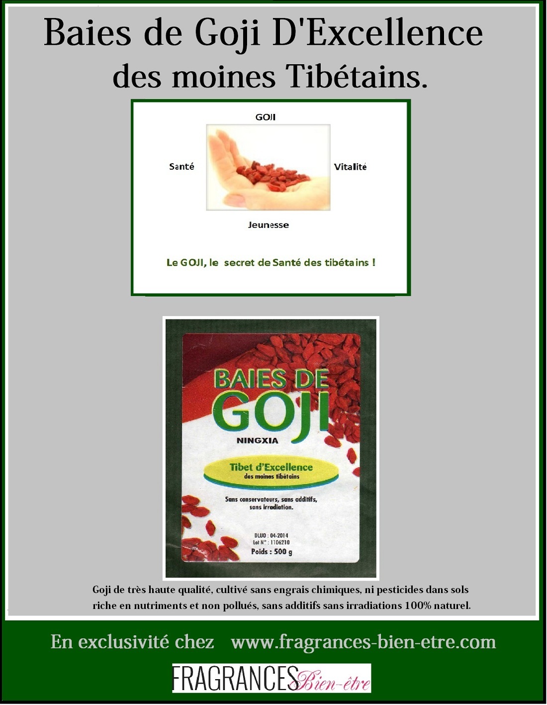Fragrances-bien-etre.com distribue en exclusivité pour la France des baies de goji d’excellence, cueillies à la main par des moines tibétains. Les baies de Goji sont l’antioxydant le plus puissant du monde.