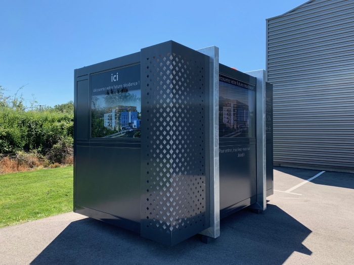 • Mobile et transportable : il peut être déplacé en fonction des besoins et des opportunités des promoteurs immobiliers. Par exemple, il peut susciter l’intérêt dans un Salon professionnel, puis être installé quelques jours plus tard devant un immeuble en construction, avant d’être déplacé dans un lieu de vie fédérateur (une rue passante, un centre commercial, un parking …).