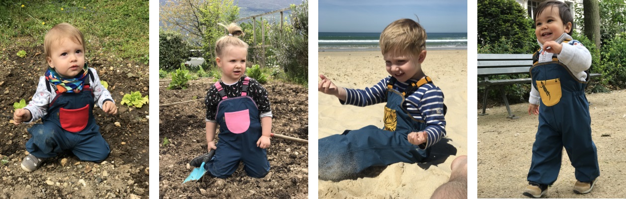 ” C’est en amenant mes enfants jouer dehors que l’idée de créer une salopette de jeu et de protection m’est venue. Je voulais que mes enfants puissent jouer librement sans avoir à me soucier de l’état dans lequel j’allais retrouver leurs vêtements. ”
