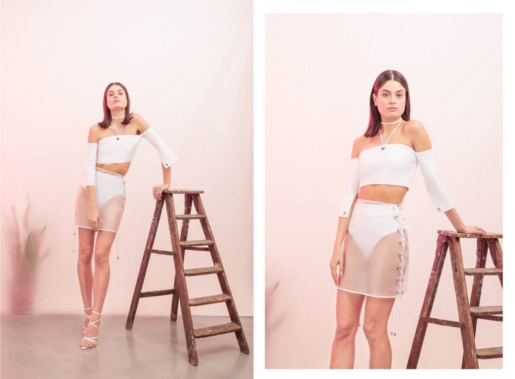 Sa collection de fin d’études nommée “White Spirit”, s’inspire de l’ère Space Age et de l’esthétique de l’architecture futuriste et contemporaine.