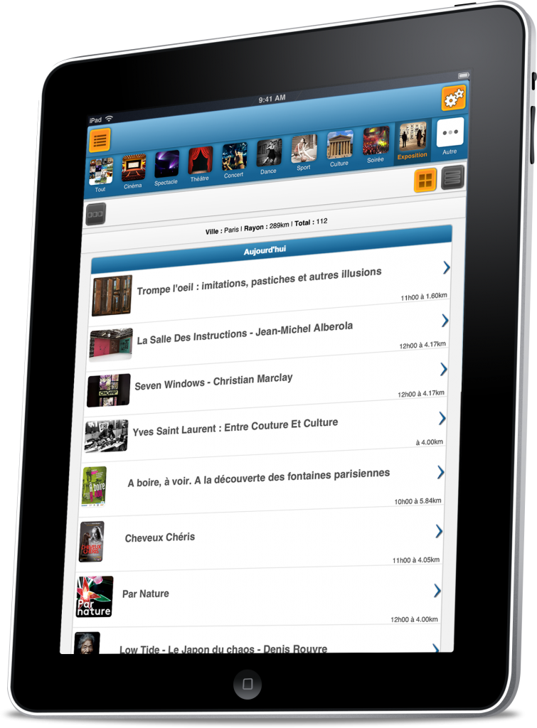 • Par catégorie (spectacle, théâtre, musique, danse, sport, et culture) pour s’informer de l’actualité culturelle, artistique et sportive.