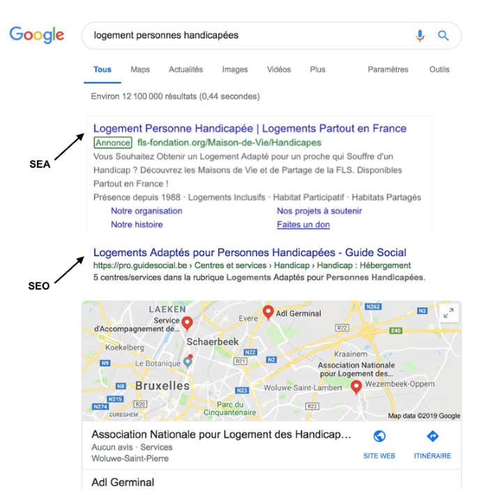 Des annonces Google correctement publiées entraîneront à la fois le référencement de l’organisation en haut des résultats de recherche (SEA) (à savoir que 70% à 77% des clics se font sur les 5 premiers résultats d’une recherche), une augmentation immédiate du trafic vers le site internet de l’association ou de la fondation et un trafic de qualité grâce à des méthodes précises de ciblage de milliers de mots clés.