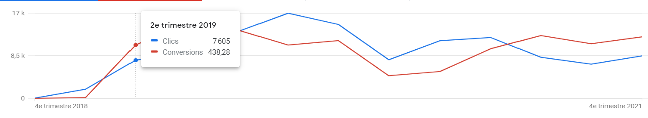 Les clics depuis les annonces Google ont largement augmenté depuis le début de cette collaboration, comme le démontre le graphique ci-dessous. Trois mois suite au lancement des campagnes, en juin 2019, l’ASDER recensait plus de 7 000 clics vers son site web.