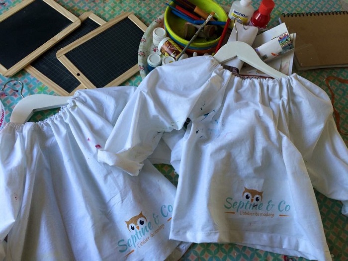 Cette expérience sera à la base de toute la pédagogie innovante qu’elle développera ensuite au sein de Septine & Co. Une fois les tabliers enfilés, hop, les enfants peuvent se salir les mains, les essuyer sur leur tablier, et créer dans un joyeux bazar qui révèle le potentiel artistique de chacun(e). Tout le matériel est à leur disposition et adapté à leur âge, il n’y a pas de restriction.