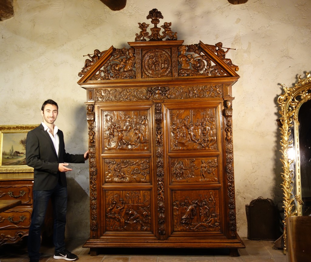Franck Niccoletti, dirigeant de Méounes Antiquités, vient de faire une acquisition rare : une armoire biblique historiée, aussi appelée armoire de Sumène ou armoire figurée du Bas-Languedoc, datant du XVIIe siècle.