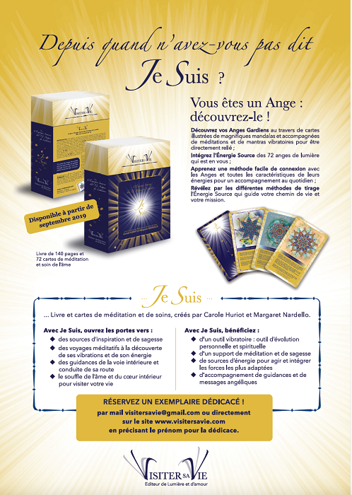 Je Suis invite à vibrer, méditer, être guidé, voyager, être inspiré, révéler et intégrer l’Energie Source des anges pour s’ouvrir à une autre voie de champ de conscience. C’est un magnifique outil vibratoire de développement personnel pour visiter sa vie.