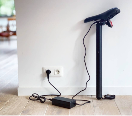 La batterie (LG ou Samsung suivant les modèles) est idéalement cachée dans la tige de selle, ce qui allie esthétisme et praticité. Facile à retirer, elle peut donc être rechargée sans avoir besoin de déplacer le vélo.