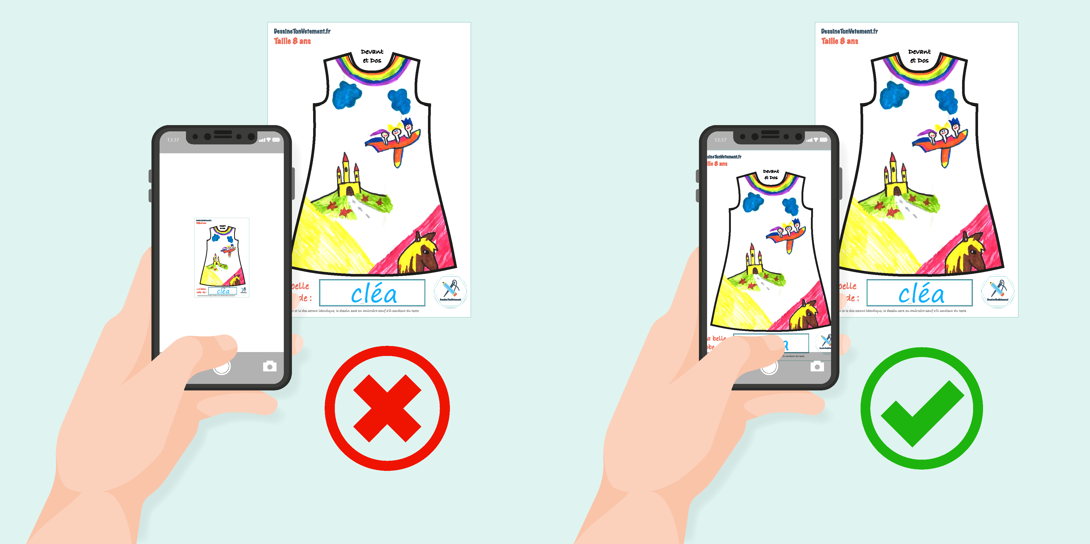 Il vous suffit simplement d’envoyer à Dessinetonvêtement une photo de votre enfant avec son plus joli dessin à côté.