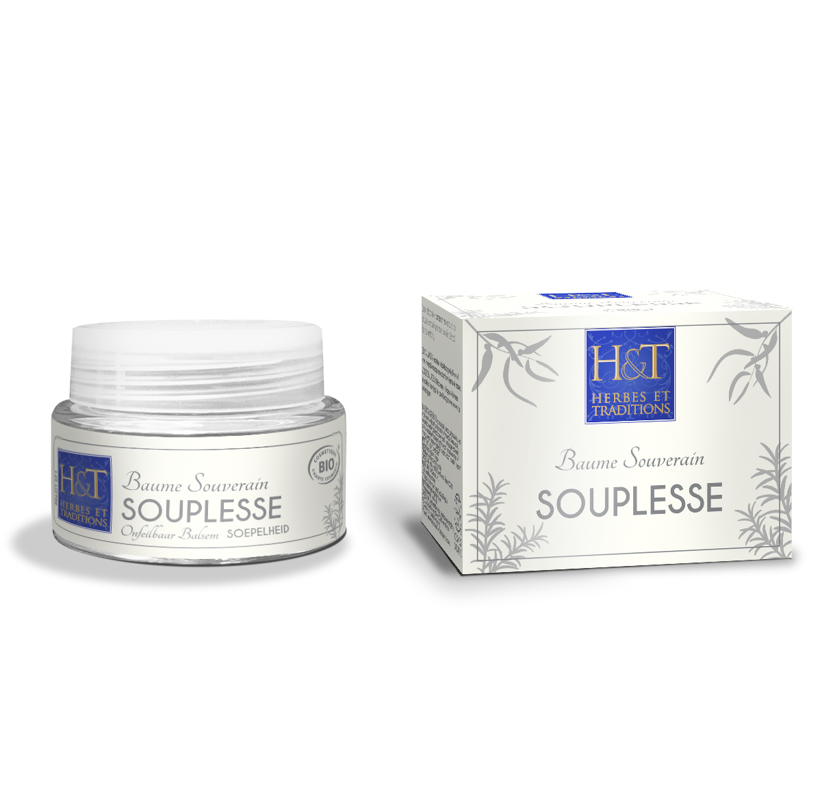 Tous les ingrédients qui entrent dans la composition des quatre baumes souverains Herbes et Traditions sont d’origine naturelle. Conditionnés dans des pots en verre de 30 ml, les baumes sont formulés notamment à base de karité bio et équitable et ont une haute teneur en ingrédients bio : 99,9 % pour les baumes détente, pectoral et souplesse, et 98,7 % pour le baume sommeil.
