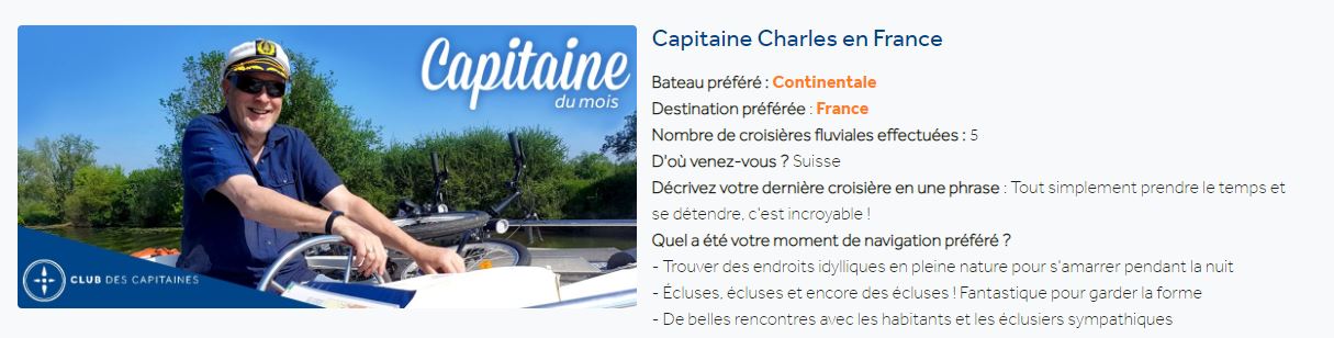 Et pour intégrer le Club des Capitaines, il n’y a rien à faire : tous les clients Le Boat rejoignent automatiquement ce programme de fidélité qui leur offre des avantages exclusifs (remises, accès en avant-première aux ventes flash, accès prioritaire sur les nouvelles destinations et les nouveaux bateaux…).