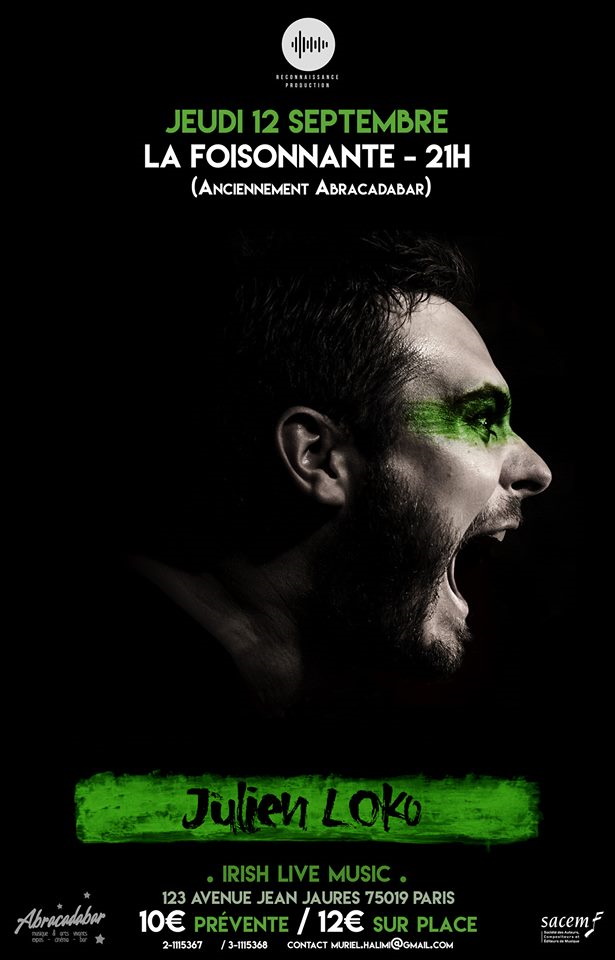 Connu anciennement sous le nom de L’Abracadabar, le bar La Foisonnante (situé au 123 avenue Jean Jaurès à Paris dans le 19ème arrondissement) ouvrira ses portes à Julien Loko, le 12 Septembre à Paris pour un concert exceptionnel et rythmé au son irlandais !