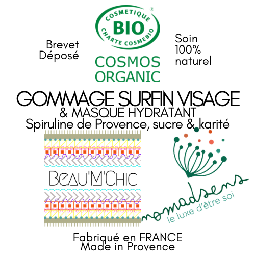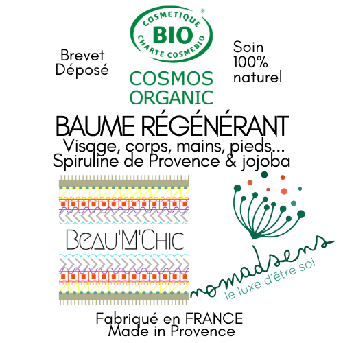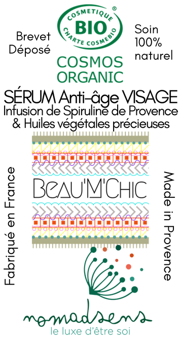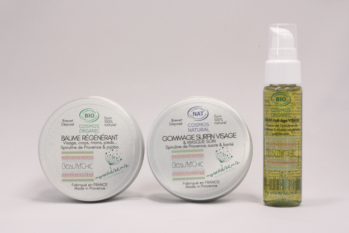 Les produits de la gamme BEAU’M’CHIC de NOMADSENS, entièrement fabriqués et transformés en Provence, misent sur les super-pouvoirs de la nature, et notamment sur ceux de la spiruline. Cette micro-algue aux mille vertus, choisie par NOMADSENS est naturellement riche en fibres, en protéines, en vitamines, minéraux, oligoéléments et même en antioxydants.