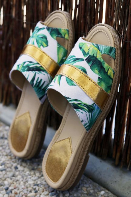 Sandales plates, tiges en toiles de cotons recyclés et fibres de feuilles d’ananas dorés