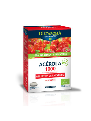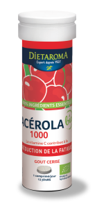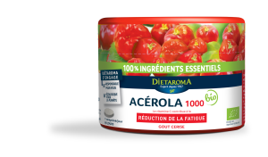 Pour retrouver de la vitalité et reprendre la vie du bon côté, DIETAROMA propose son concentré d’Acérola 1000 Bio, avec 100% d’ingrédients essentiels.