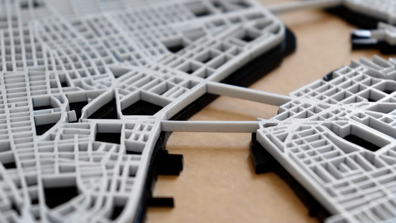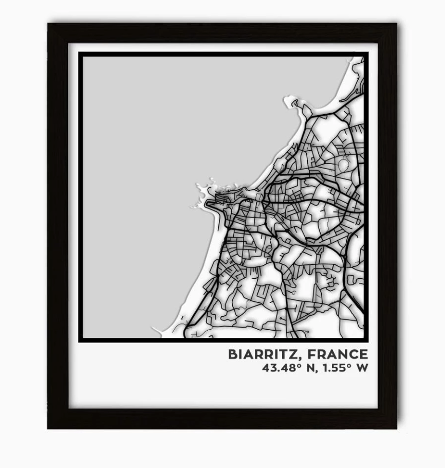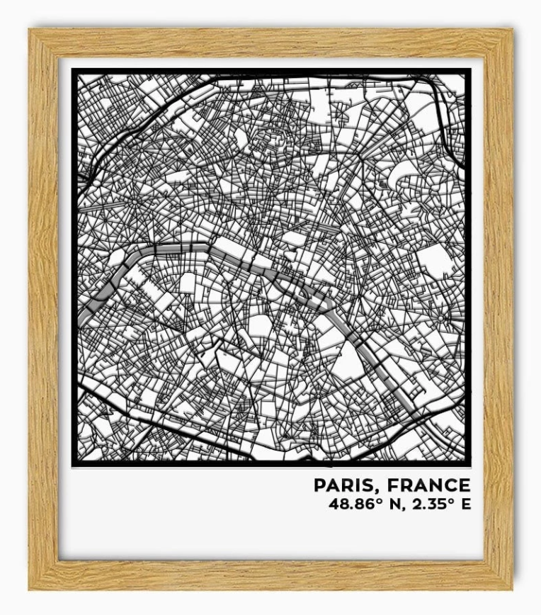 Le laser tranche dans le plexiglas ou le papier pour révéler des rues, des ponts, des fleuves et le littoral. Selon la ville, ce procédé peut prendre jusqu’à quatre heures. Toute la production est effectuée dans des ateliers en France. Le cadre et les matériaux proviennent également de fournisseurs français, pour assurer la meilleure qualité possible.