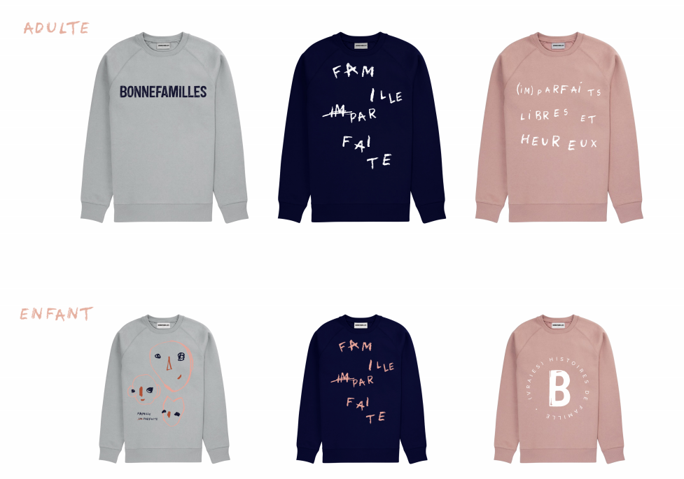 C’est dans ce contexte que Sophie Lagarrigue annonce le lancement de Bonnefamilles, une nouvelle marque éco-friendly pour toutes les familles. Elle présente sa première collection de sweat-shirts autour du thème de la famille (im)parfaite.