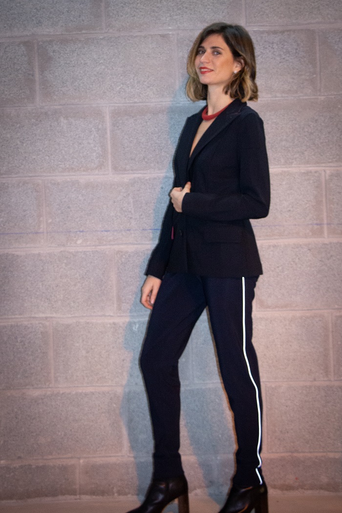 Le pantalon, la veste et le manteau peuvent s’associer ou se dissocier. Avec 27% ou 28% d’élasthanne, c’est le confort des tenues de sport les plus techniques, mais le style de la ville.