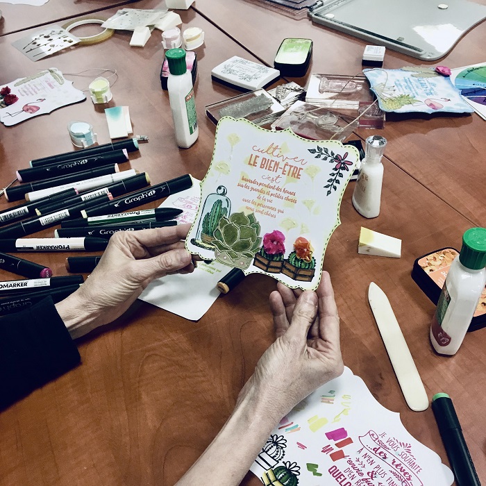 Dans cette vie trépidante, la pratique d’activités créatives a été une vraie bouffée d’oxygène, une « bulle refuge », comme elle la nomme, dans laquelle ni les contraintes ni le stress ne pouvaient s’inviter.