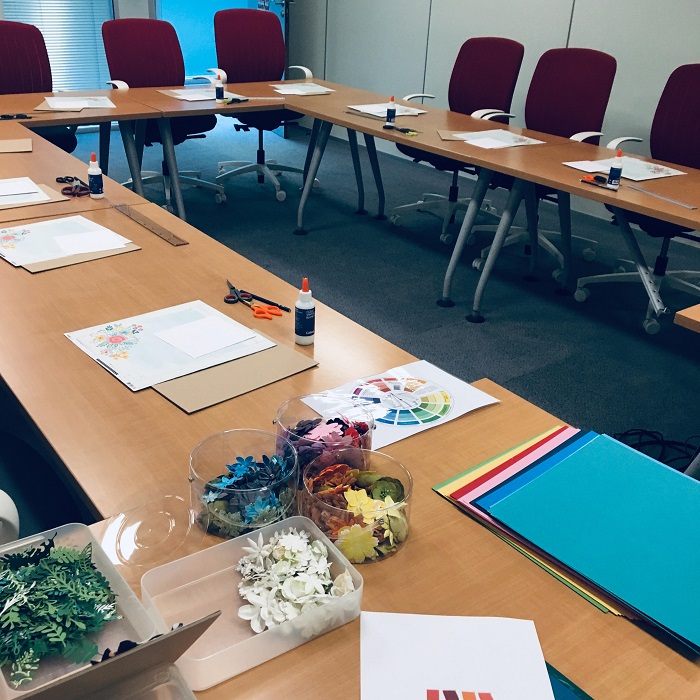 Un atelier “Vision Board” (collage sur toile) permettra par exemple la création d’une œuvre collective qui pourra ensuite prendre place dans vos locaux.