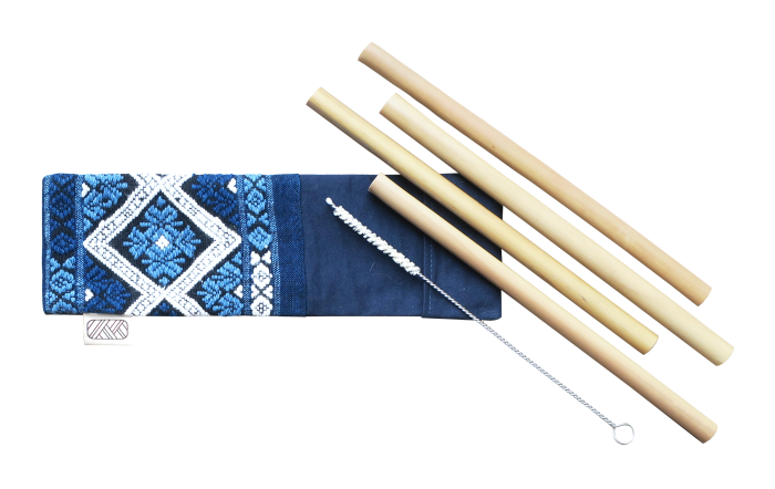 Kit pailles bambou accompagné de sa pochette :