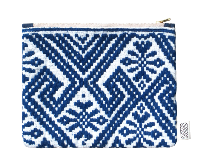 Cette pochette confectionnée en coton bio existe en 3 couleurs différentes (Bleu foncé, bleu clair et ocre). Elle est 100 % équitable. Les tissus qui ont servi à sa conception sont issus de chutes de tissus des vêtements de la collection Laos. D’autres pochettes en soie et coton issues de la collection Cambodge sont aussi disponibles.