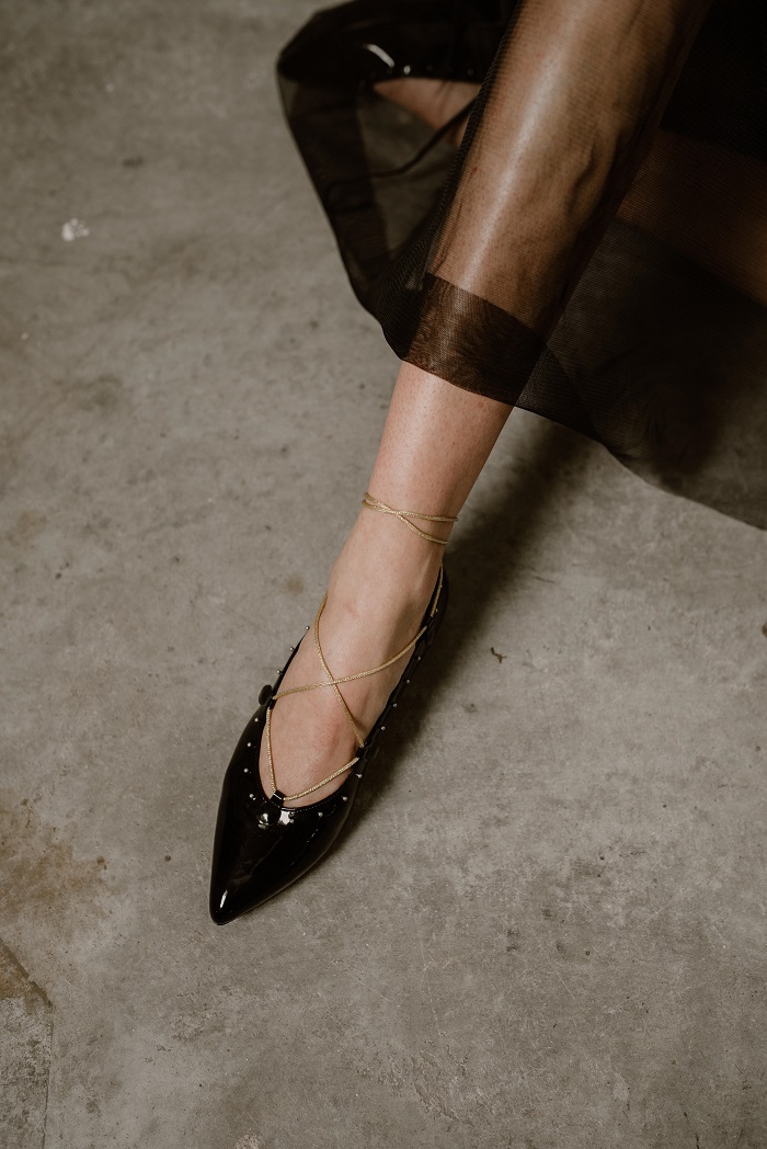 - Des rubans et lacets inspirés de la danse classique : résolument modernes, ils soulignent les chevilles et ils symbolisent la féminité.