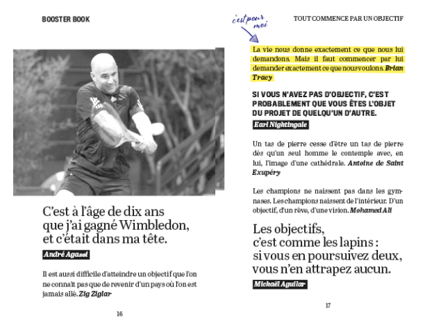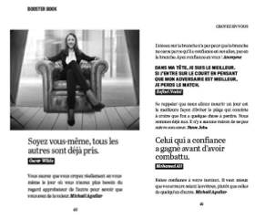 BOOSTER BOOK réunit ainsi 14 conseils de réussite et plus de 400 citations motivantes ou inspirantes telles que :