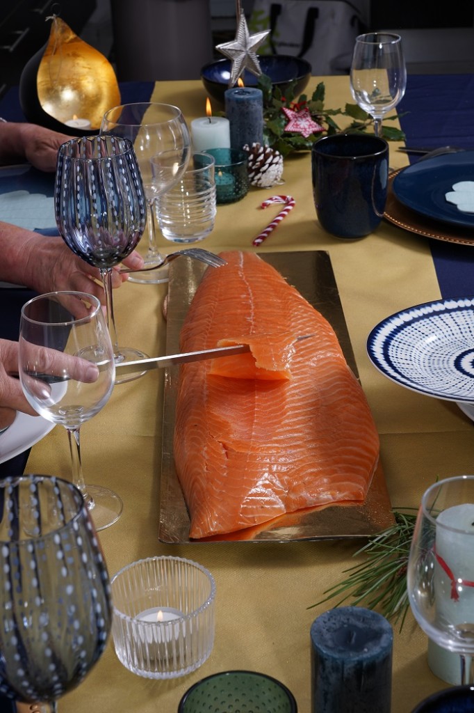 Il est composé d’une grande bande de saumon fumé artisanal d’un kilo, et d’un kilo de noix de Saint Jacques.